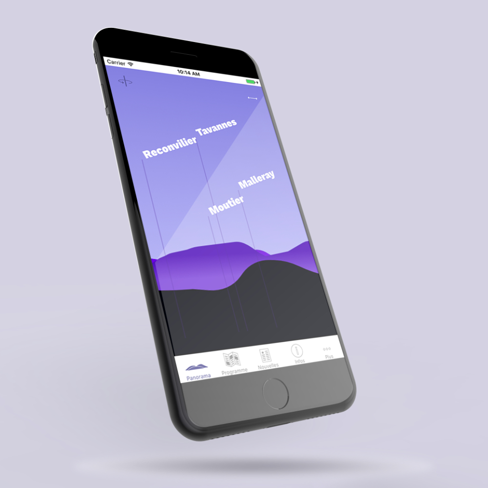 L'application iOS et Android construit le panOrama par rapport à la position géographique de l'utilisateur·trice et place les localités des spectacles sans tenir compte des frontières.