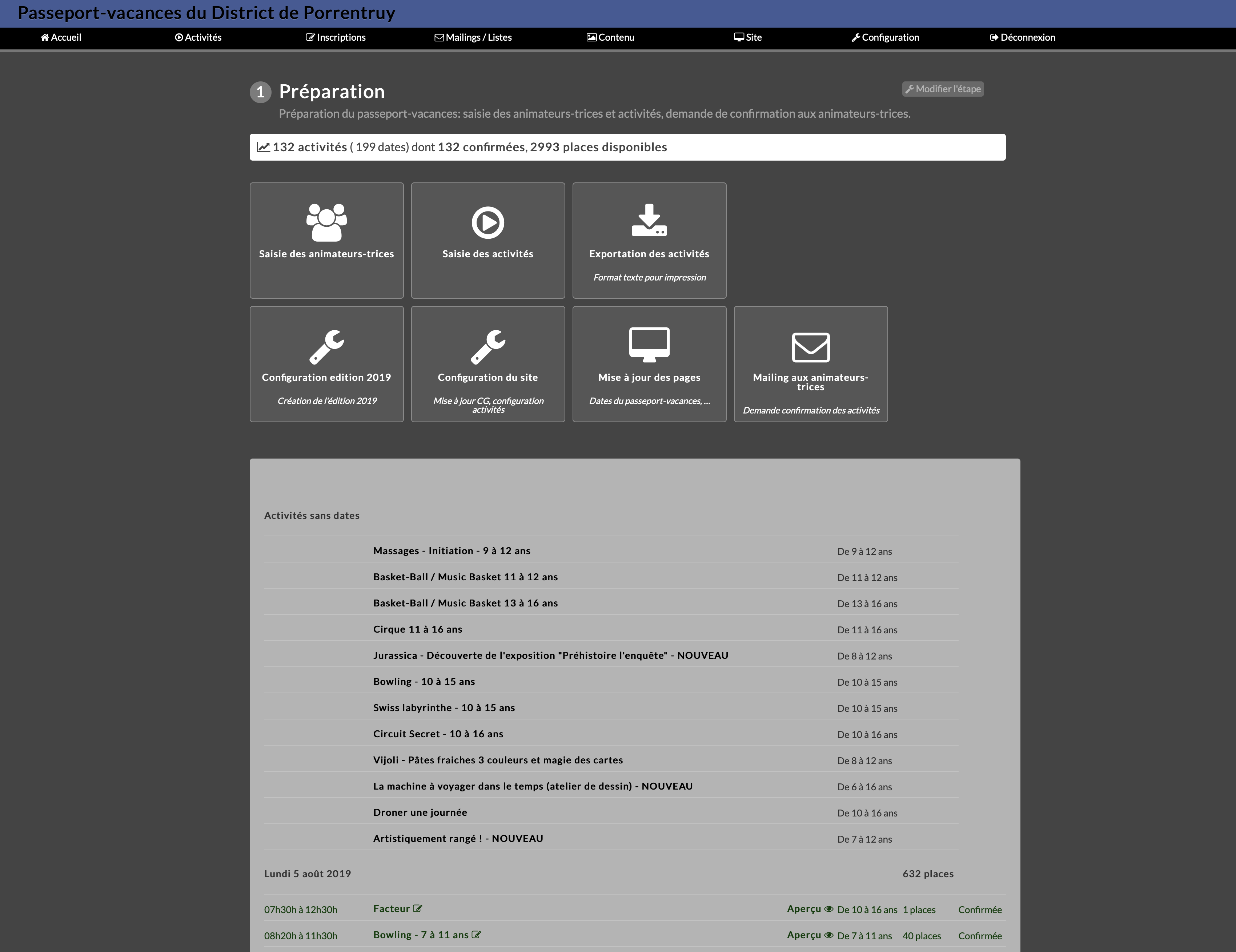 Un outil pour gérer toutes les phases d'un Passeport Vacances, de la sélection des activités à la facturation en passant par les inscriptions.