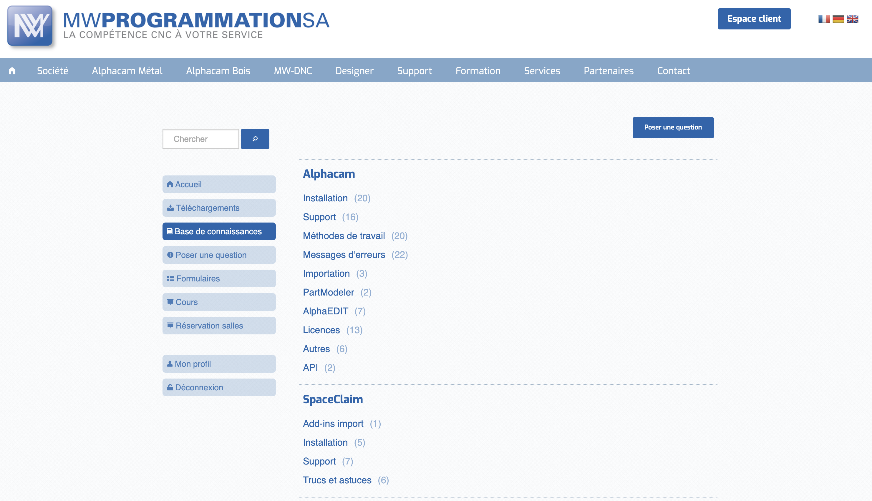 L'espace membre permet aux clients de MW Programmation de consulter une base de connaissances et de télécharger les mises à jour des logiciels distribués par l'entreprise.